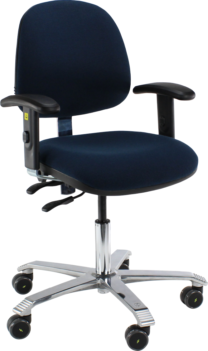 ESD Chair Ergo 2300 ESD | Fixed Seat Angle | Armrest 5 ESD | Lumbar Support | Blue Fabric ESD
